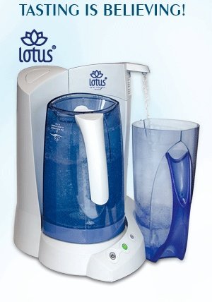 The lotus Water Treatment System uses a proprietary 2-stage process to purify and filter drinking water: Lotus protects your family from the bacteria and toxins that can sometimes seep into your tap, lake or well water. Features: Countertop system purifies tap water with a proprietary two-stage process. Enjoy great-tasting water that is safer and healthier for your family. Save a fortune compared to bottled water. The first stage adds ozone (O3) to the water to destroy more than 99.99% of bacteria and viruses. The second stage uses activated carbon in a custom-formulated carbon-block filter to remove pesticides, wastes, other chemical contaminants plus any remaining ozone. Ozonation, when combined with carbon filtration, is more effective ù and more cost efficient ù than any competing system utilizing ultraviolet radiation or reverse osmosis or filtration alone. Kills 99.99% of Cryptosporidium, Giardia, E. coli and many other pathogens. Effective on visually clear tap, lake and well water. Water costs only pennies per gallon. Base UnitUse & Care Guide